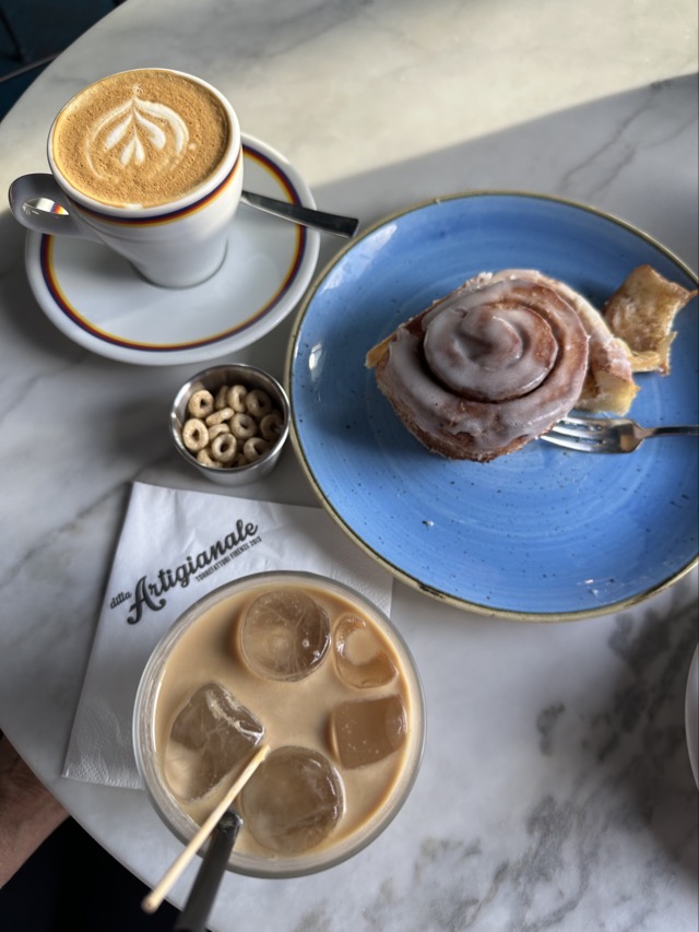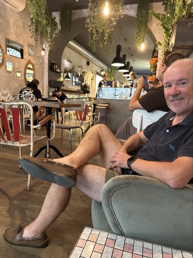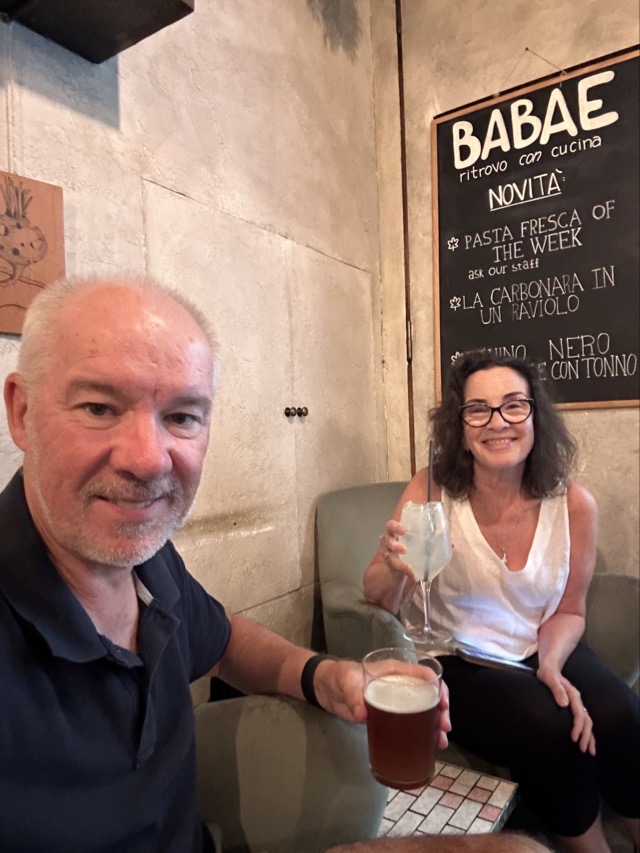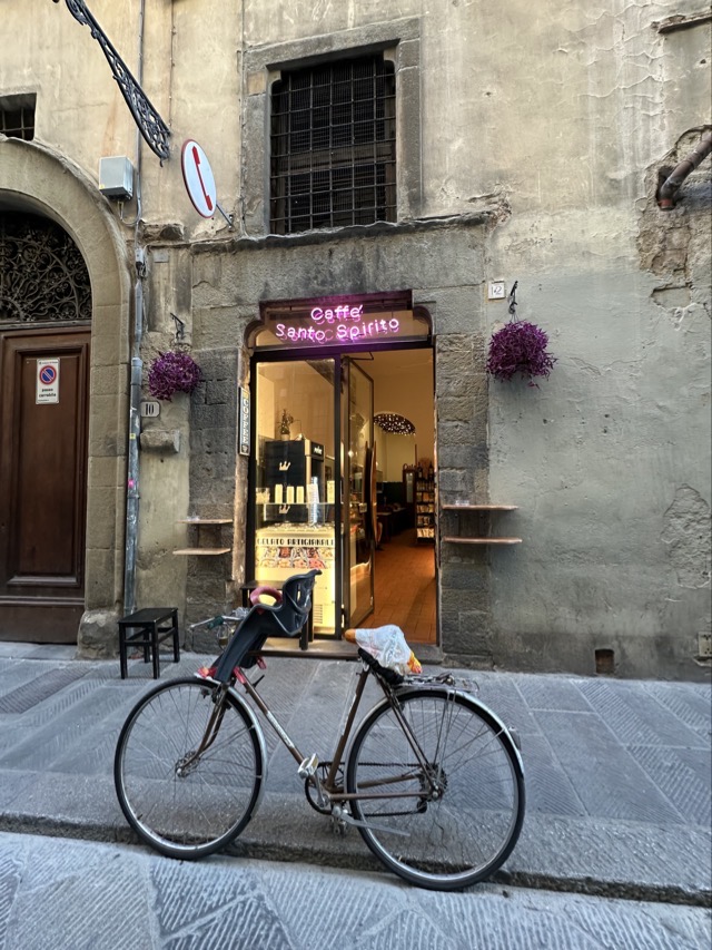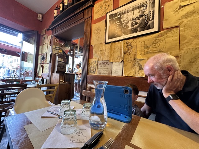 The Beany coffee app registered a favored coffee venue just a 2 minute walk from our apartment and so that is where we all gathered after our morning walk. Ditta Artiginale was a nice cafe indeed but they charged an extra €1.50 to sit inside which seemed a bit unfair. We’re not likely to return on that basis.
