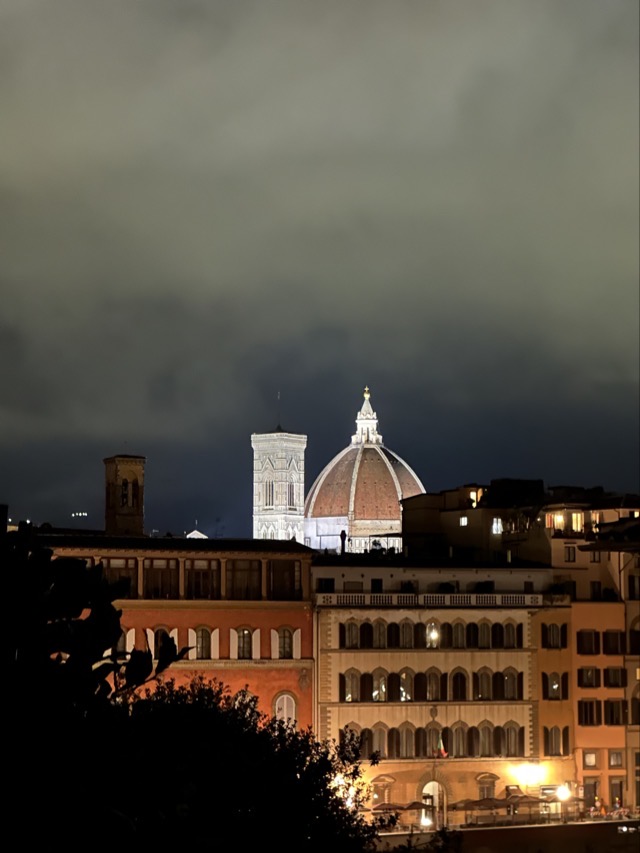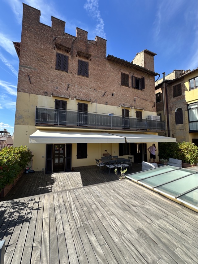 Oh, did I mention our apartment was a big winner? With all the stress of our arrival I think I forgot to make a note. Well, it was! Mark even commented that he thinks this is the best accommodation I have ever sourced! A huge call indeed! The apartment was located in a 16th century magnificent Palazzo building, Palazzo Lanfredini, right on the Arno that has been renovated and partitioned off into a few separate spaces. Our particular apartment was a beautifully decorated modern space with 4 bedrooms, 2.5 bathrooms and a large lounge, dining kitchen area. The biggest wow factor though was the amazing large terrace, with views out across the Duomo, and the evening lights made this vista exceptionally spectacular. We might not ever leave!