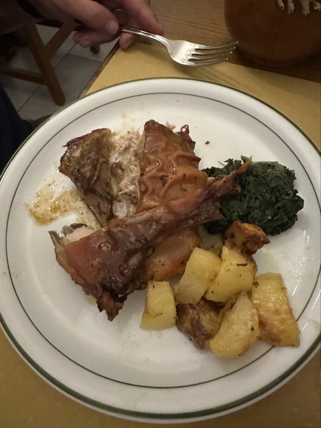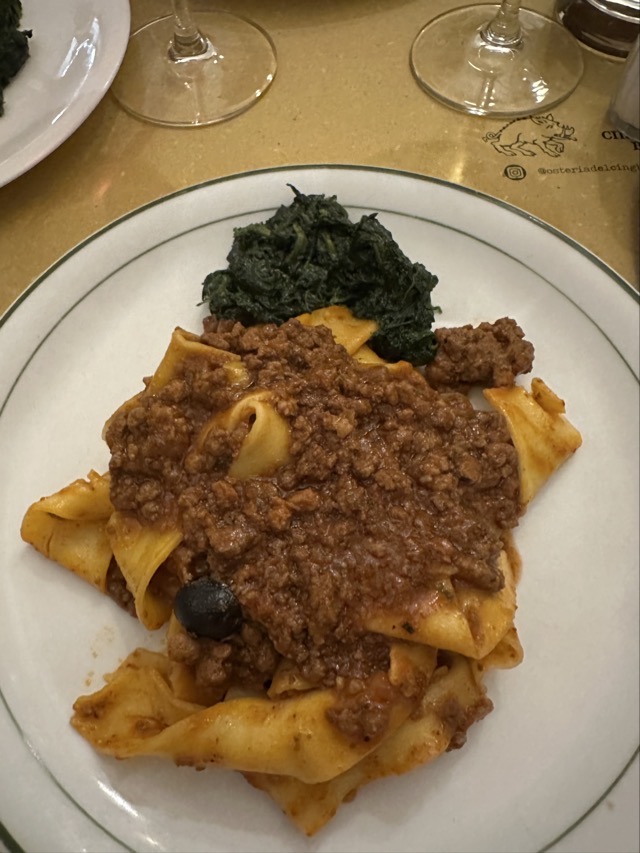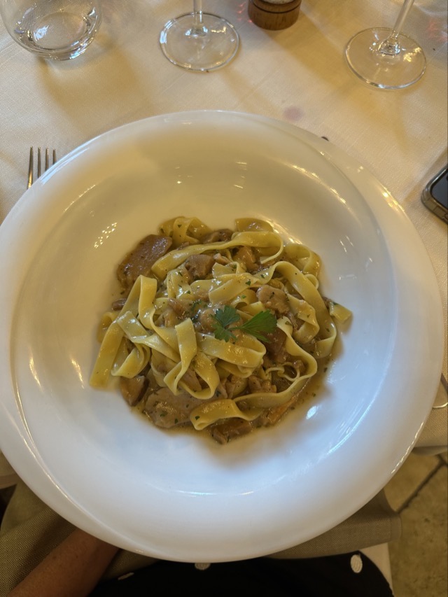 We went for dinner at Osteria del Cinghiale Bianco, the place that Matt and Annabelle went to on our second night in Florence, and I have to say it was a bit underwhelming as well. There was an enormous queue here as well, mostly loud Americans, and we were shuffled in like cattle and treated much the same except without cattle prods. Our bruschetta was only ok but the pasta Cinghiale was lovely as was Marks roast pork meal. I was a tad annoyed to see a couple next to us with their baby in a high chair and another family with a toddler when we’d clearly been told that no children were allowed in the restaurant and they didn’t have any high chairs so maybe that clouded my overall judgement as well. It was all a bit rushed and we were home within the hour. It was a favorite restaurant with Stanley Tucci when he was in Florence though so maybe giving a go if you’re ever in Florence.