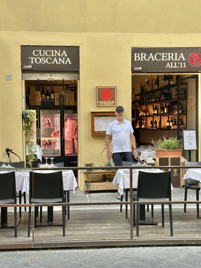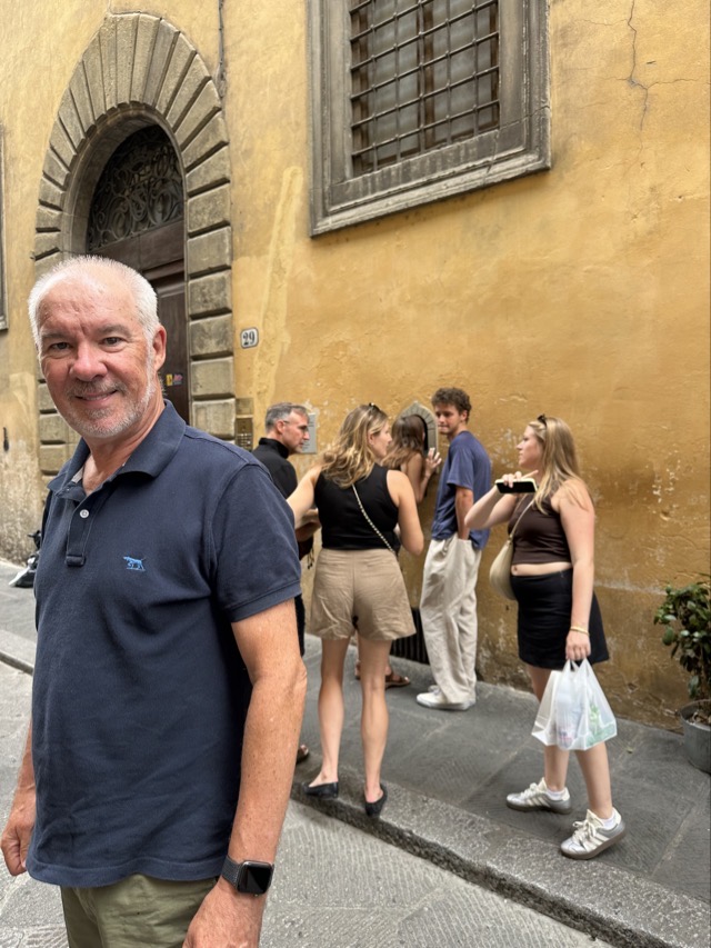 Mark and I did a GPSmyCity tour of the southern side of the Arno in the afternoon, after Matt and Annabelle returned from seeing the David, and it was great. This took us through an area we hadn’t seen much of before and gave us a better perspective of the different neighbourhoods that make up greater Florence. One upside for Mark was that he’d been hankering for a Florentine Steak and we happened to pass a steak restaurant that looked lovely and rated well on Google. So that was now locked in for dinner in Monday. The upside of the tour for me was the mention of a particular gelato store and their famous cheesecake gelato, if you’re lucky enough to find it in stock that is. We found the shop easily and they did happen to have the cheesecake gelato on offer and I can attest to the fact that it is absolutely delicious!