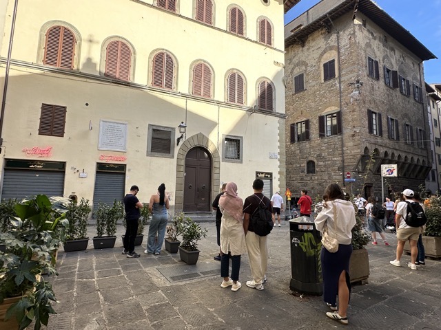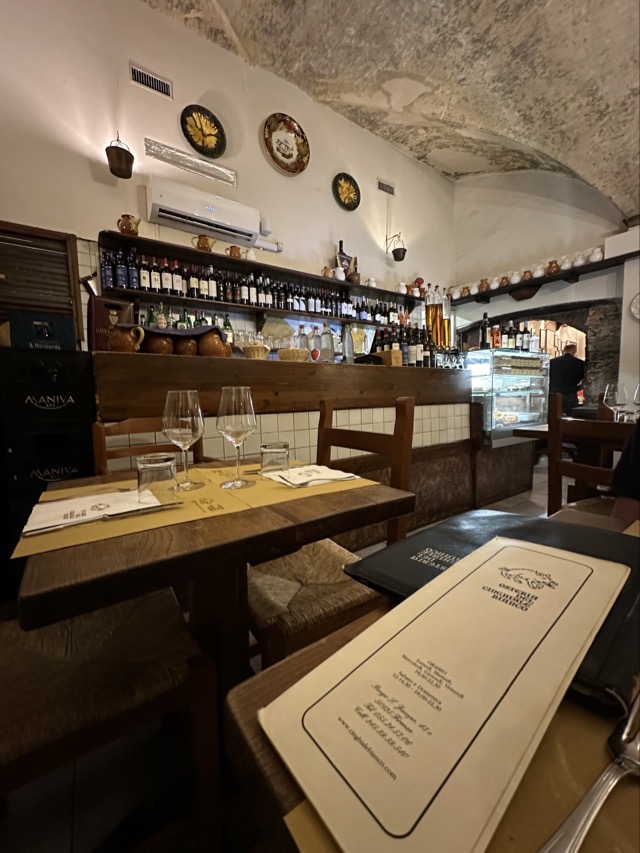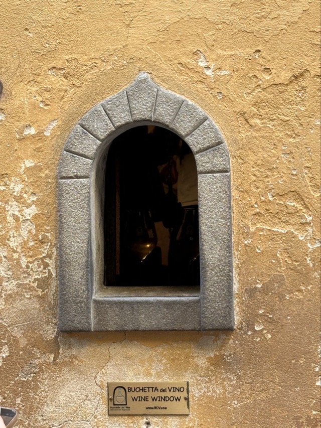 It was 5 pm before Mark and I ventured out again and there one more activity I was keen to complete and that was a visit to a wine window. Wine windows have been around Florence since the 16th century and were initially created as way to sell wine from your home whilst avoiding paying tax but they were also important during the period of the Black Death as a safe way to buy and sell wine. They’ve had a new lease on life since 2015 when an association was developed to help preserve their history and that’s why you may see your Instagram feed flooded with influencers at one of the over 100 wine windows around Florence Old Town. This article has a map showing the location of wine windows across Florence with just some of them now operating as functioning wine windows; many have been converted to other uses, for example, intercom systems. We were lucky enough to have a wine window in the lane behind our building and so this is the one we visited. The Babae wine window was one of the first to be regenerated and was very popular. Each time we’d been down there there was an enormous queue and tonight was no different. So we had to settle with sitting in the attached wine bar and watching those getting their wine window fix. It was all a bit underwhelming really as we didn’t even get any ‘snakes’ with our drinks!
