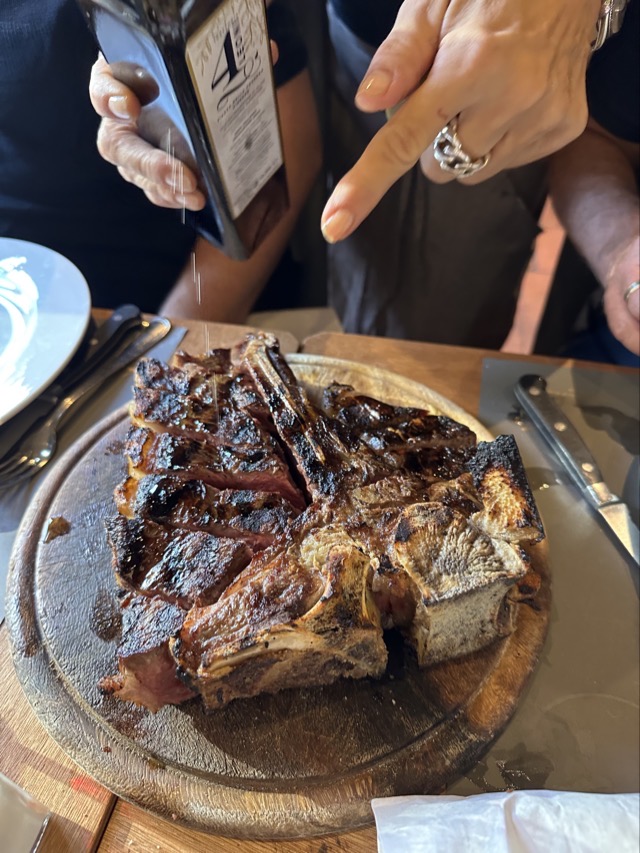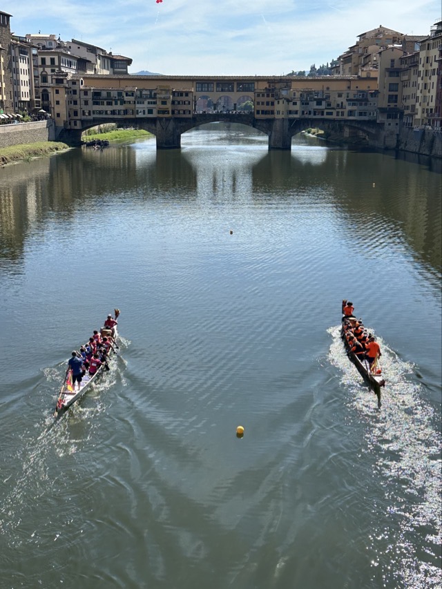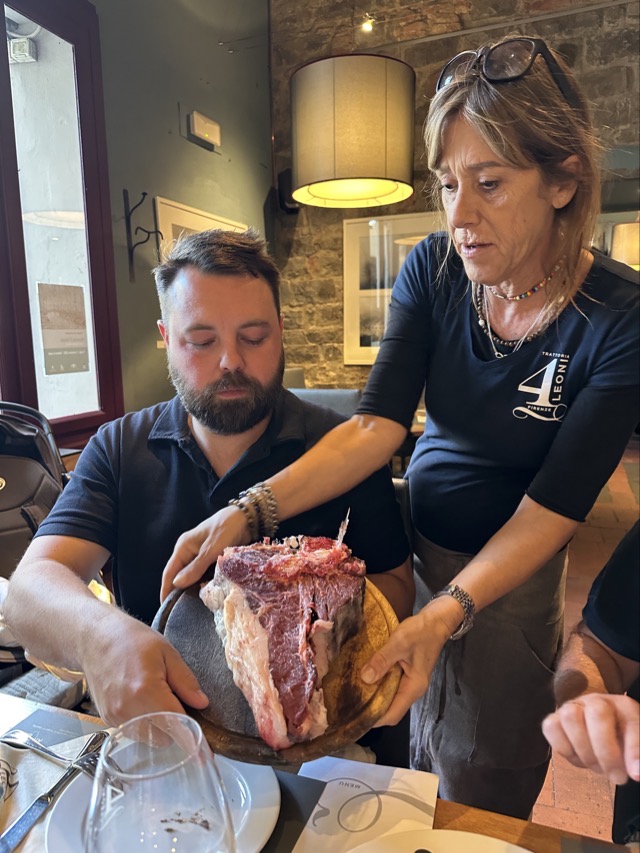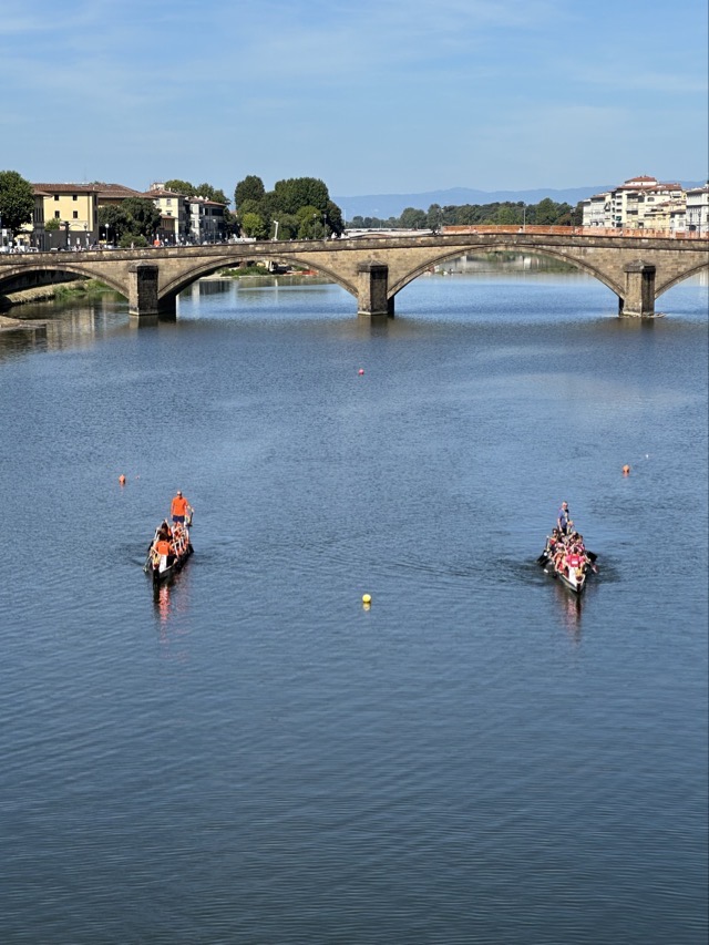 It was after 5 pm before we all ventured back out and were lucky enough to catch some of the dragon boat festival that was running on the Arno this weekend. We then drifted on to our early dinner booking at Trattoria 4 Leoni and this turned out to be great. Mark finally got to try a Florentine steak and it was delicious; we shared one between the four of us and had trouble finishing. This would be a restaurant I’d recommend but there are so many in this side of the Arno you can really take your pick.
