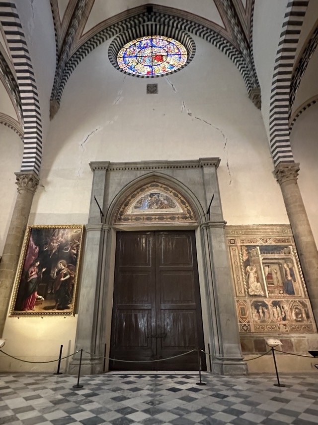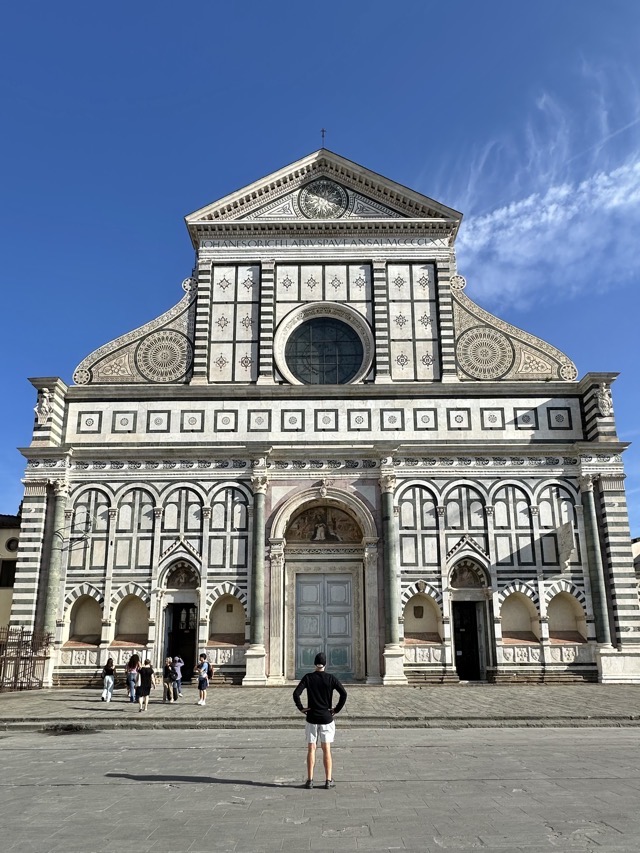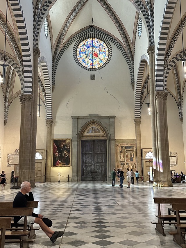 It was our last full day in Florence and, being a Monday, many museums and shops were closed so that was factored in to our planning. Our morning started with a walk to Cafe Gilli to try their famed hot / iced chocolate which only Annabelle ordered. The verdict was that it tasted like Nutella but at least it got us out for a walk and to a new venue. We separated shortly after the cafe visit with Mark and myself heading to the Basilica Sant Maria Novella and Matt, Annabelle and Teddy went on to the food markets to buy produce for their dinner before Matt returned his rental car to the airport.