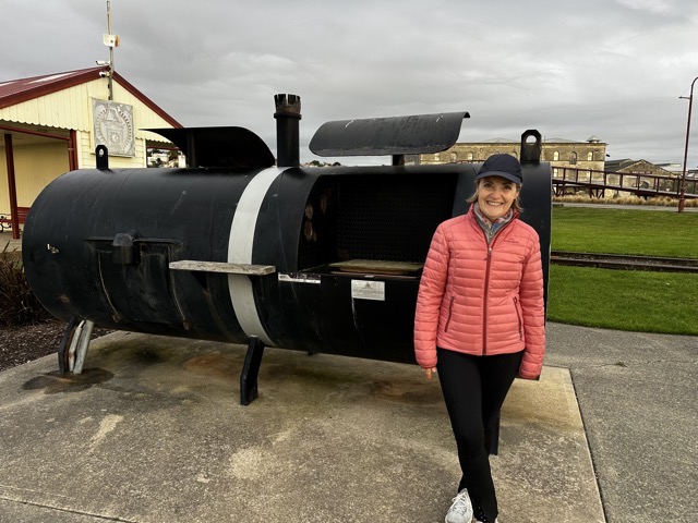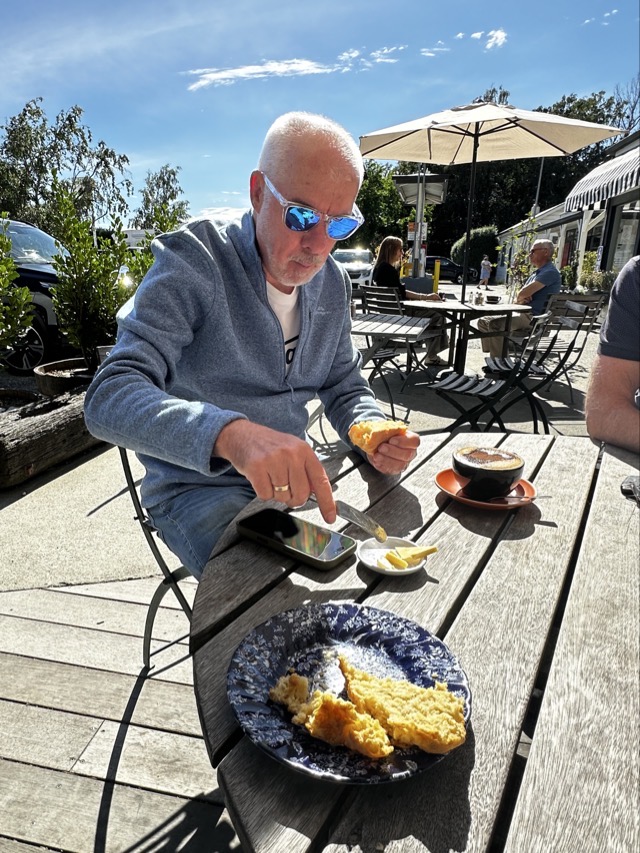 It was about 9 am by the time we got away for the 4 hour drive across to Oamaru and we were lucky to have good weather. Our first stop was at Tarras as this little township held significance for Colleen given she had worked here on a sheep property back during one her university holiday periods. We marked the occasion with morning tea where we, once again, sampled some excellent home made cheese scones. This bakery item is obviously ’a thing’ in this part of the world as it was the third time we’d enjoyed this delicious food item. We were becoming something of experts on this food category now. One thing worth noting is that Cromwell, the area just before Tarras, was a most beautiful part of this Central Otago region and had numerous vineyards making this another place we’d add as a stopover if we’re ever back in this region.