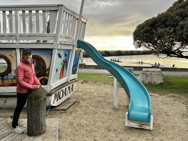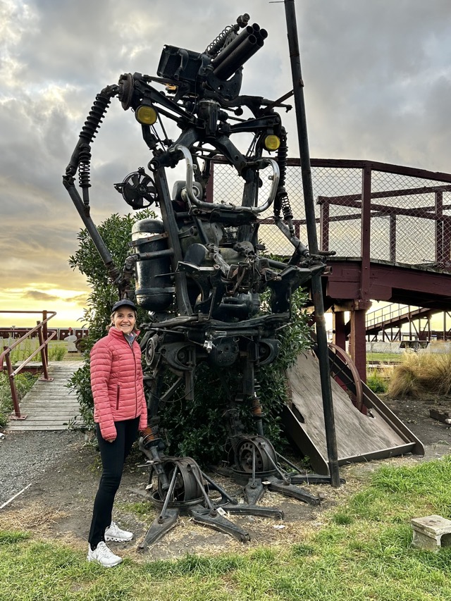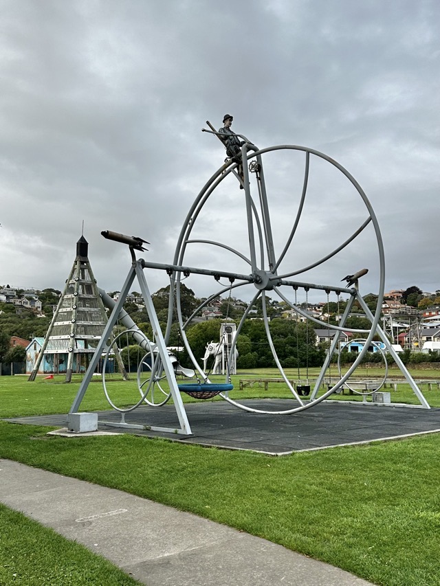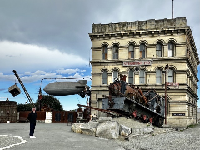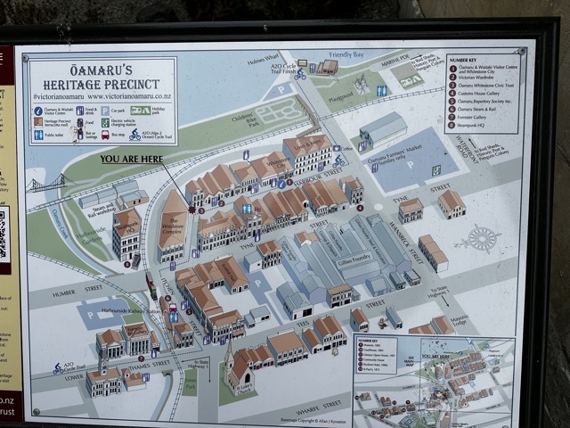 The boys went for an early ride and Coll and I set out for a walk down towards the waterfront area of Oamaru. It seemed a bit unfortunate that the main railway passed right along the coast line preventing much opportunity to realise the potential of the beautiful beachfront area of Friendly Bay. The railway was clearly important historically when the area was an important port for the export of grain and wool, as well as during the pioneering frozen meat industry period, but that whole market segment has declined significantly. Today the area is more of a tourism hub, with the Steampunk Museum ant its centre, and so the railway location seems a bit problematic.
