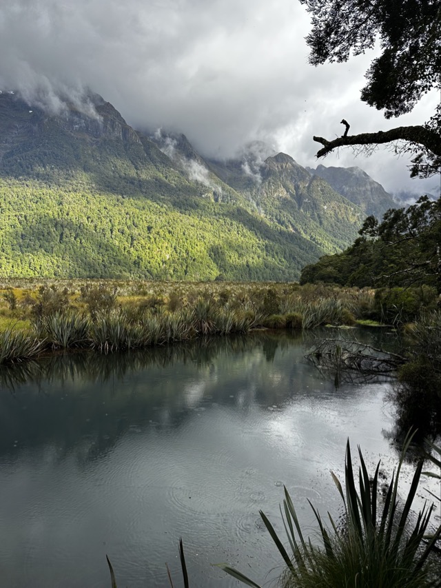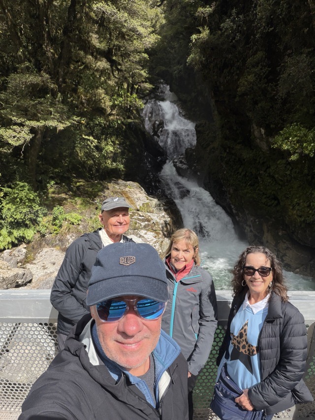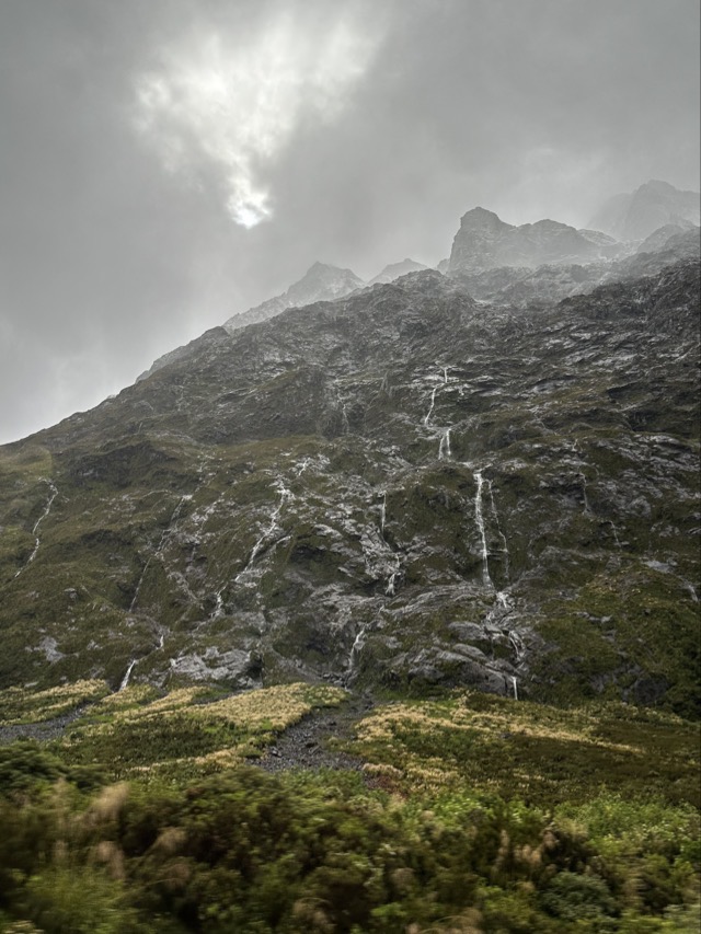 It was raining when we all woke up, but luckily it cleared by the time Simon, our guide for the day, picked us up for our tour to Milford Sound, the most impressive fiord of the 14 fiords in this region called Fiordland. We had opted to do a small group tour, with Luxe Tours, so that we could all enjoy the scenery along the way and that proved to be a wise decision and one I would highly recommend if you’re ever considering a visit to Milford Sound. Simon was well travelled and very well informed and gave us lots of very interesting information about the area throughout the day. One of the key things we learned from Simon is that both Milford and Doubtful Sound are not ‘Sounds’ at all, as they open to the ocean; they are both actually Fjords. We also learned that Te Anau currently has a population of about 3,000 but that is growing rapidly as people are being priced out of the real estate markets in Queenstown and Wanaka. Just as a side note, Simon laughed when we said we’d been to Invercargill as he’d grown up there and couldn’t understand why anyone would visit, a point to which we all kind of agreed but we also all agreed that the area had a lot of unrealized potential.