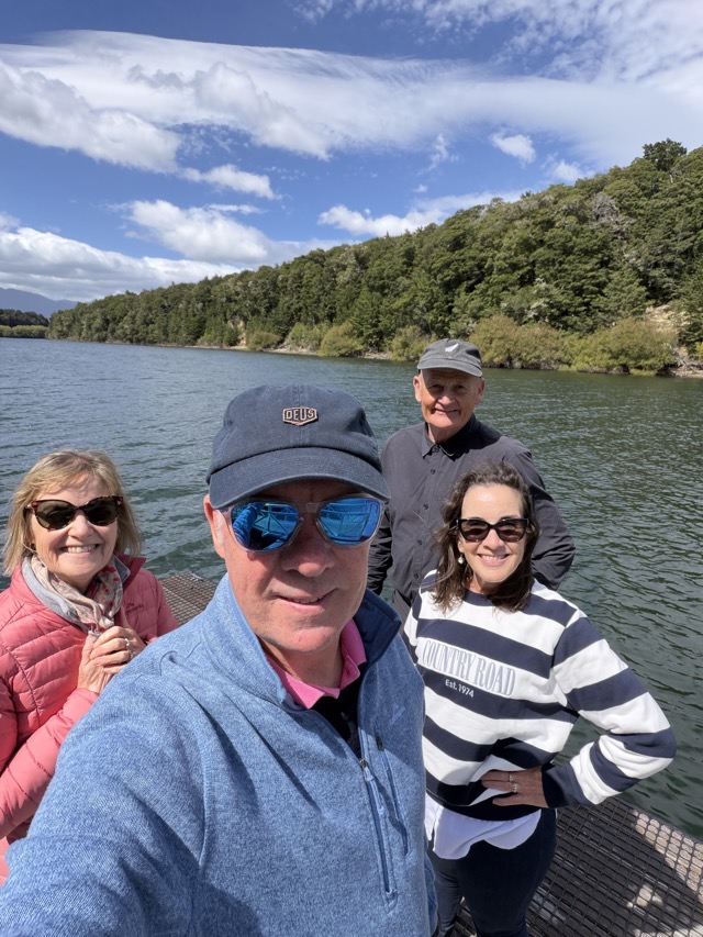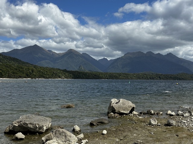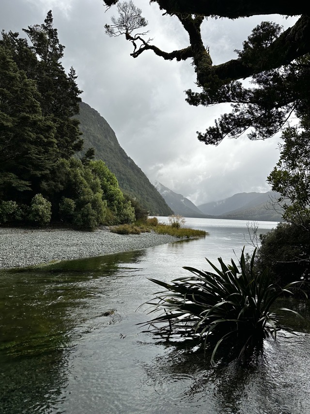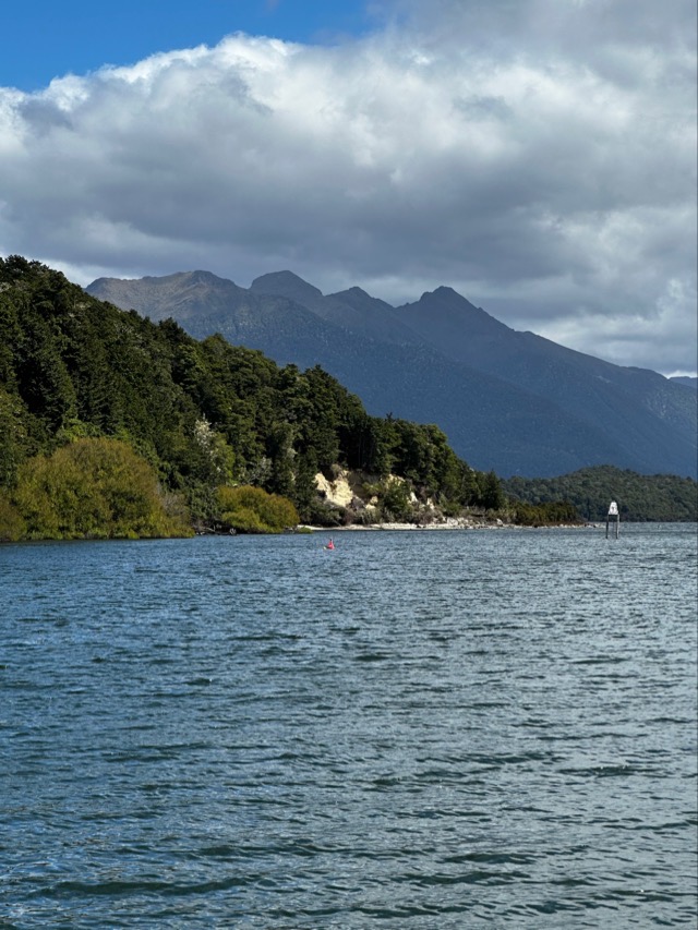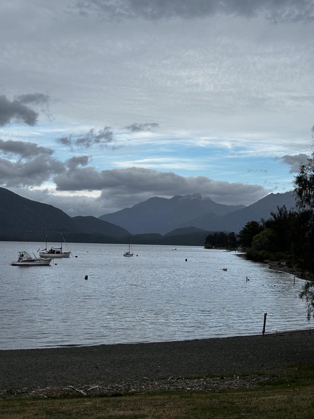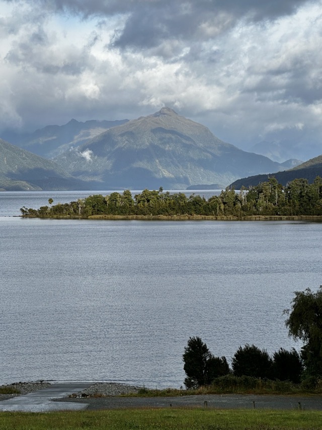 It was a chilly start to the day but the boys set off for their last bike ride of the trip. Colleen still wasn’t feeling great so I took a stroll around the lake by myself and was surprised that there were so few others out enjoying the morning. We all met up for breakfast afterwards at the Olive Tree Cafe and drafted a revised plan for the day. Initially, we had thought we’d hire bikes and do some sort of ride around a section of Lake Te Anau but Colleen wasn’t up to this so we decided we’d drive out to nearby Lake Manapouri and explore there on foot for a bit. We took a short walk around to Pearl Harbour and back followed by a coffee and sandwich stop at The Church Bar & Eatery before heading home to rest up before dinner.